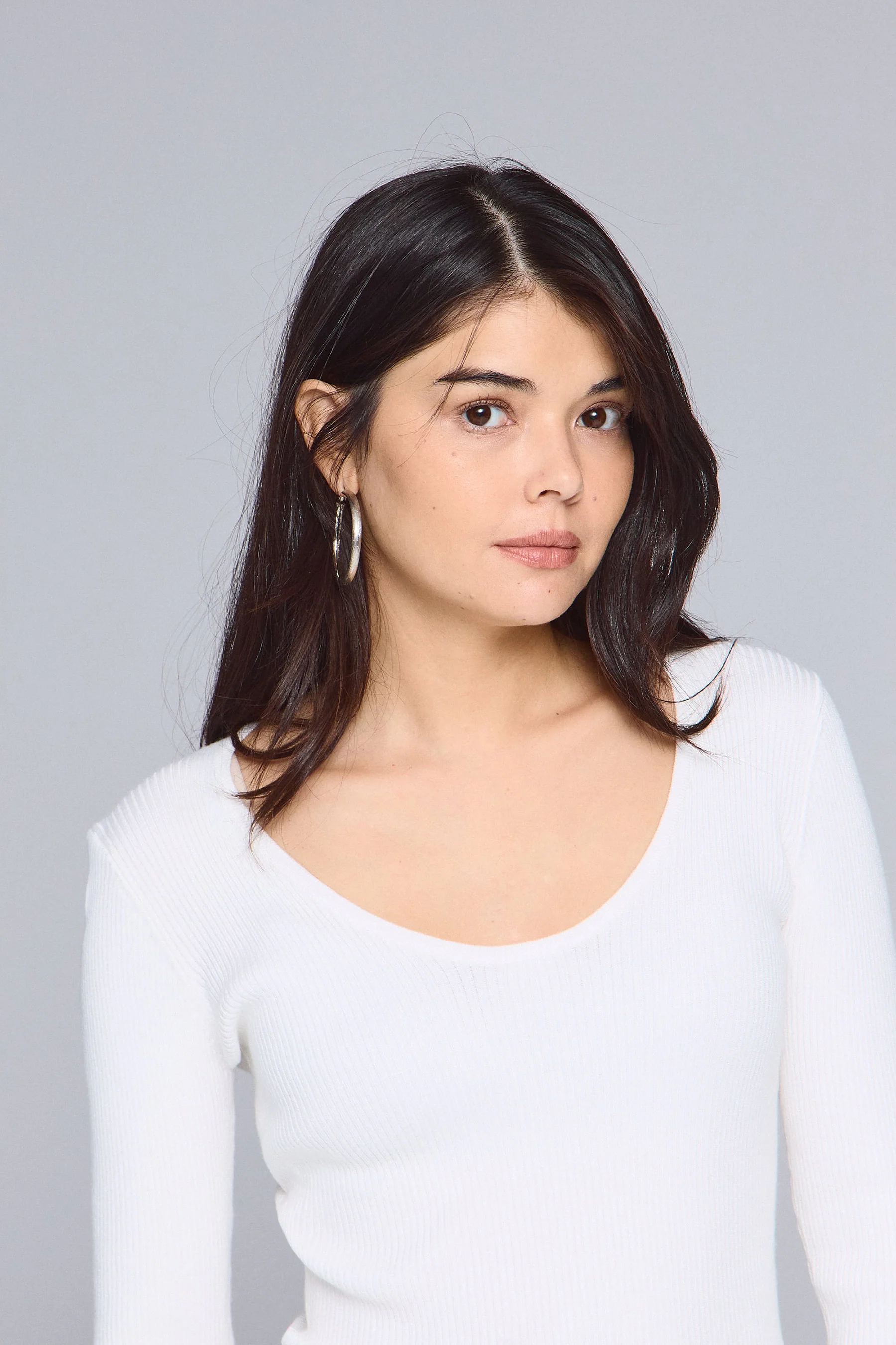 חולצת ריב ארוכה עם מפתח צוואר בצורת ביצה.