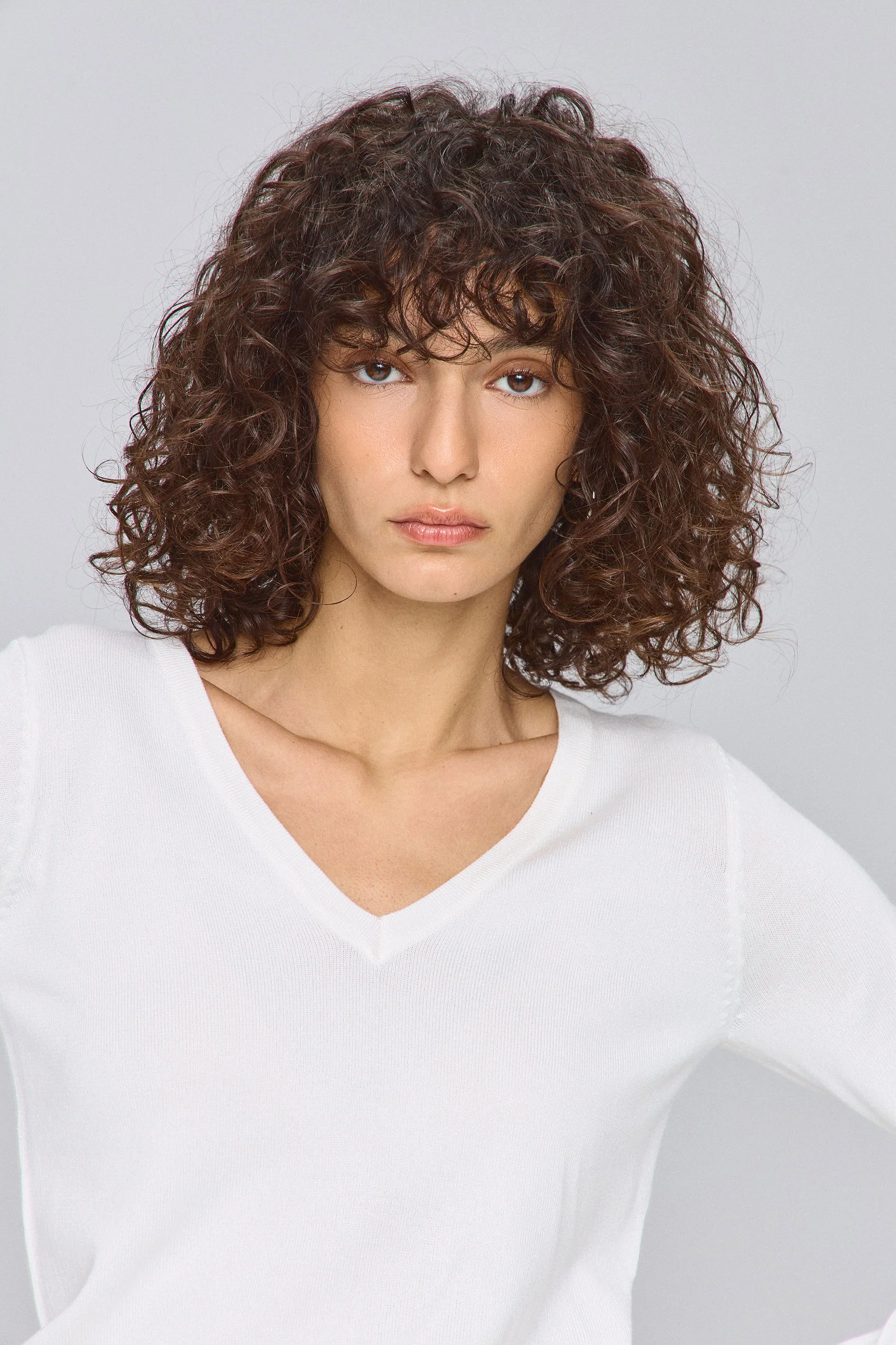 חולצת סריג ארוכה עם מחשוף וי ושליץ בסיומת השרוול.