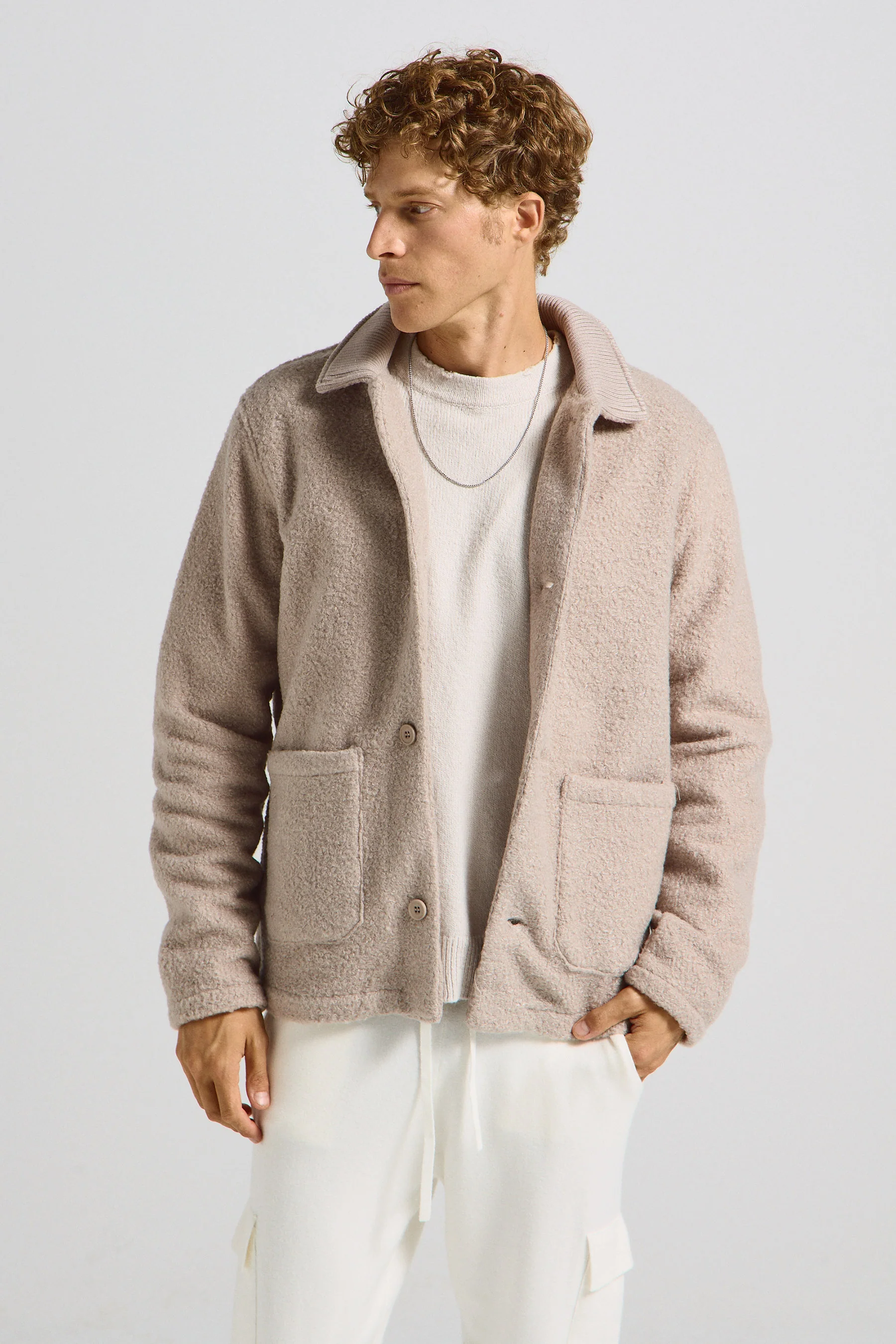 ג'קט עם צווארון קלאסי, שרוולים ארוכים, 2 כיסים בחזית וסגירת כפתורים.